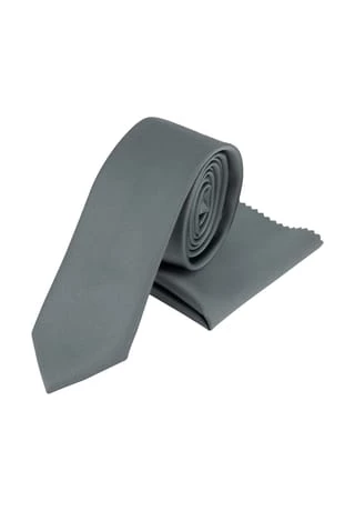 Set aus eleganter Krawatte und dazu passendem Einstecktuch. Durch das Material aus pflegeleichtem Kunststoff sind die Stücke schnell wieder einsatzbereit, egal ob für das Büro oder einen festlichen Anlass.
